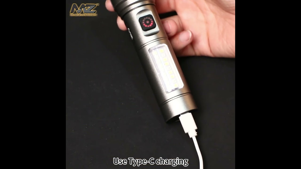 MZ M032 (RECHARGEABLE LED METAL TORCH) Zoomable 80W Power with 1200mAh Battery & 6 Modes Flashlight with 180 min Operating Time