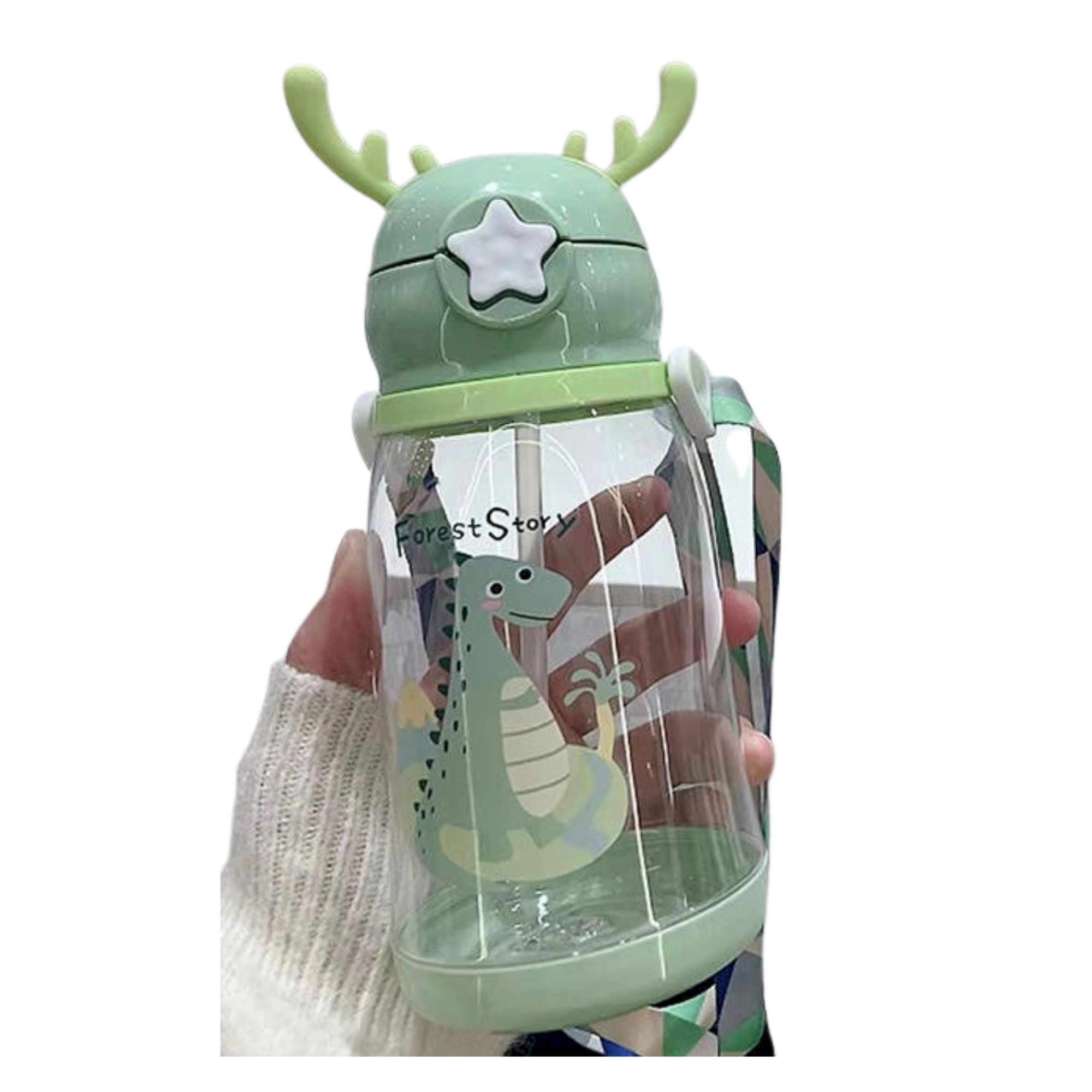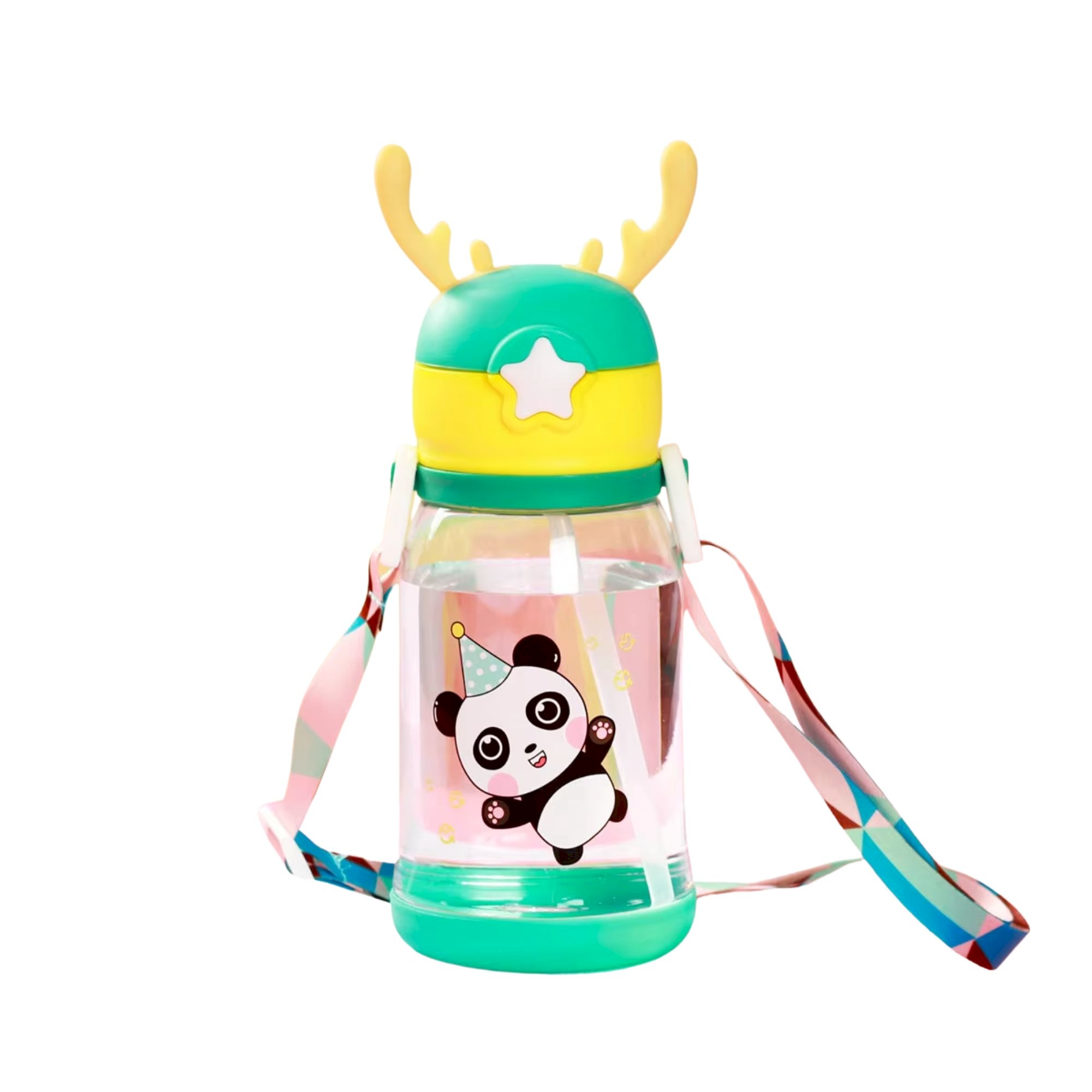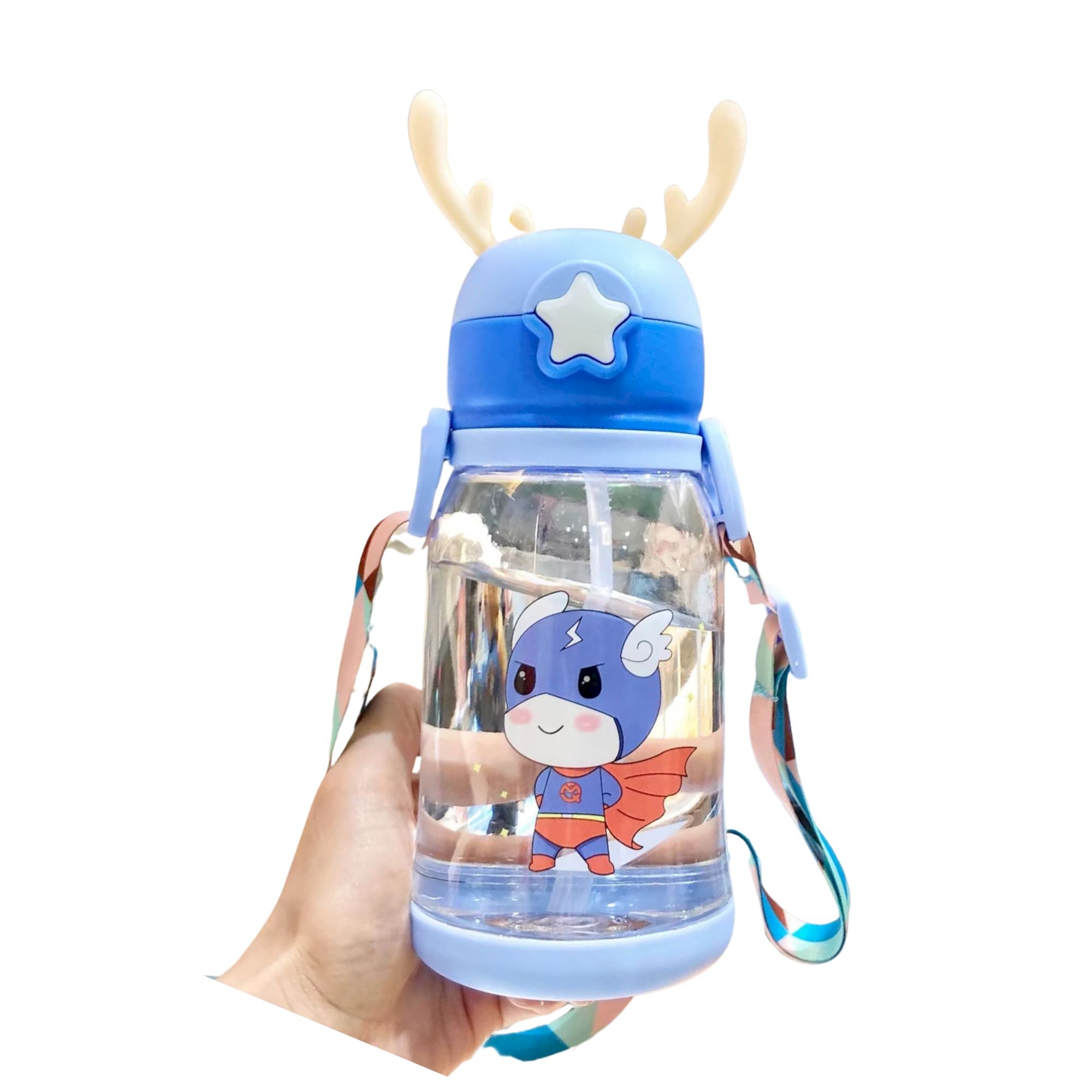 MZ 600ml Cute Cartoon Bottle with Removeable Straw & Carrying Band Perfect for Kids